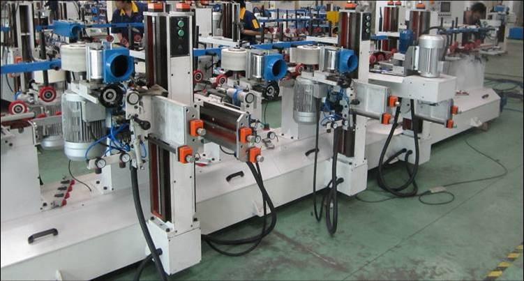 ⑵ 各段送料同步進(jìn)行,機(jī)械無級(jí)變速,輸送力矩大,適用多種材料自身及底漆砂光;