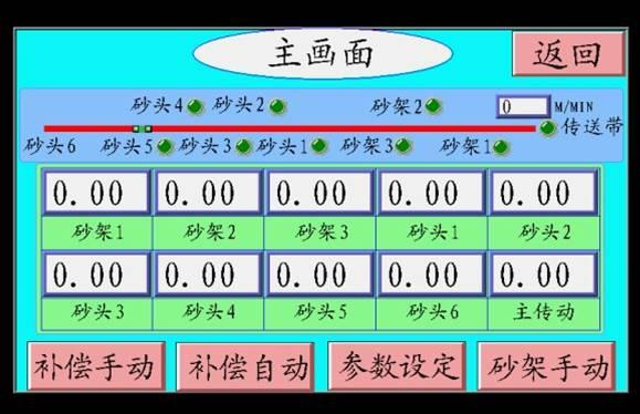 根據(jù)工藝的要求,在設(shè)計(jì)時(shí)每一個(gè)砂頭和砂架的工作是獨(dú)立分開的,可以任意選擇,方便用戶操作。為控制加工精度每個(gè)砂頭、砂架的伸縮均可通過HMI手動(dòng)或自動(dòng)補(bǔ)償。